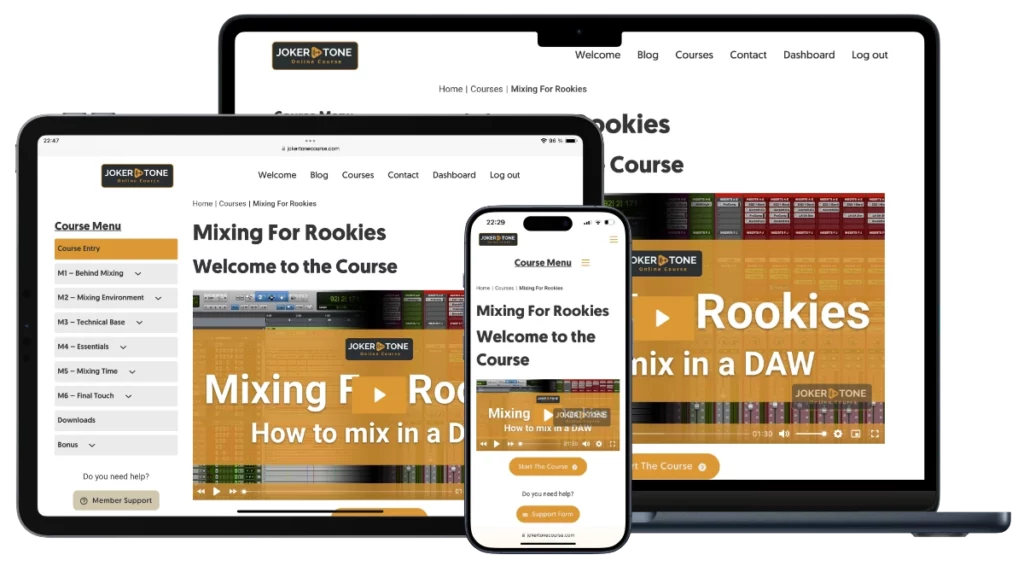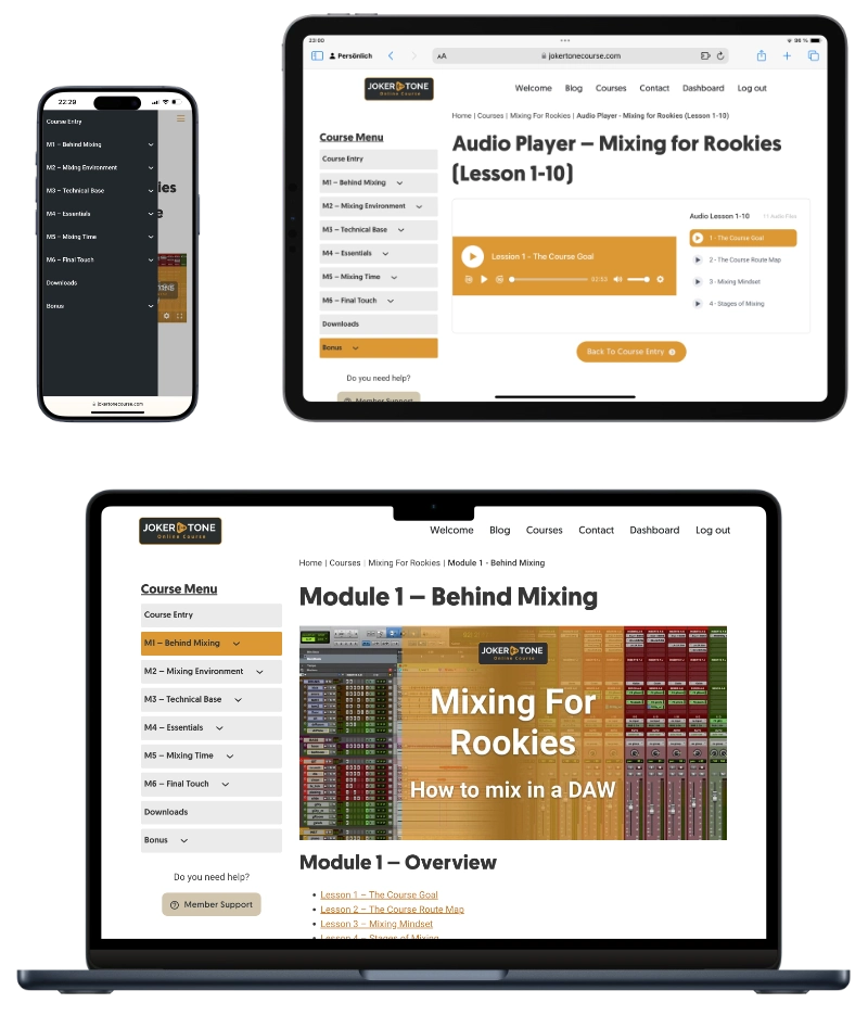 The course is a step-by-step guide that covers all aspects of the mixing process in a logically way that is easy to follow. If you come up with questions, problems or concerns, you can use the member form inside the member dashboard and send me a message.